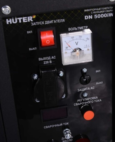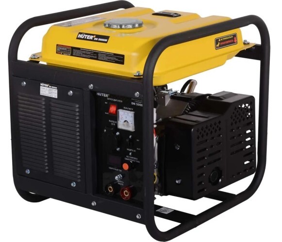 Электрогенератор инверторный Huter DN 5000iW, с функцией сварки мощностью 8 л.с. способен выполнять сварочные работы в ручном режиме ММА штучными электродами. Многофункциональное устройство может использоваться на природе, в частных домах и на дачных участках, не имеющих поблизости сетей электроснабжения, а также на строительных площадках. Запуск осуществляется с помощью ручного стартера. На панели управления имеется вольтметр и цифровой дисплей для контроля сварочного тока.
