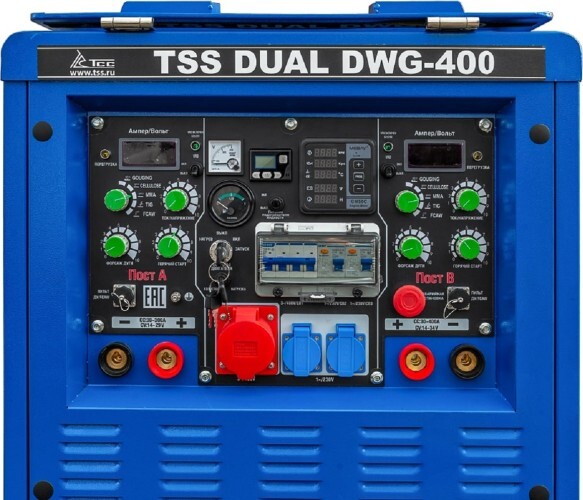 Предназначен для проведения сварочных работ как для одного, так и для двух сварщиков одновременно. Максимальный сварочный ток при однопостовом режиме работы - 400 А. В режиме одновременной работы двух сварщиков сварочный ток каждого поста до 250А с ПВ 60%, 190А с ПВ 100%. Посты полностью независимые и исключают просадку сварочного тока при поджиге дуги вторым сварщиком. 10 часов автономной работы без дозаправки в двухпостовом режиме сварки. Агрегат может использоваться как источник электроэнергии 400В/230В. Номинальная выходная мощность генератора 20 кВт.