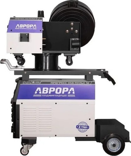 Инверторный сварочный полуавтомат АВРОРА ПРОГРЕСС 350 ПУЛЬС St - 3х фазный инвертор для полуавтоматической сварки в среде инертного/активного защитного газа MIG-MAG и для ручной дуговой сварки штучным электродом MMA. Аппарат выполнен в корпусе "декомпакт" со съёмным подающим механизмом. Рекомендованный тип катушек проволоки D200 и D300 (5-15кг). Мощный подающий механизм предназначен для работы с горелками длиной до 5 метров. Тележка с подставкой под баллон и высокая компоновка аппарата существенно облегчают работу сварщика.