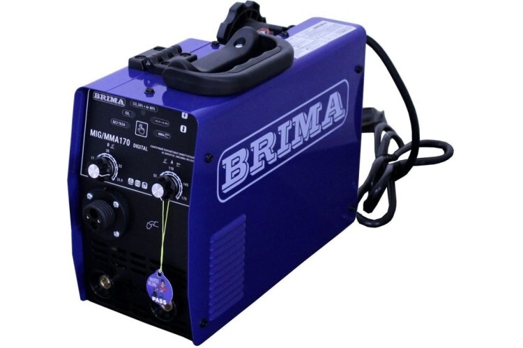 Аппарат BRIMA MIG/MMA-170 DIGITAL легко перемещать по рабочей площадке благодаря рукоятке, расположенной на верхней части корпуса и весу 10 кг