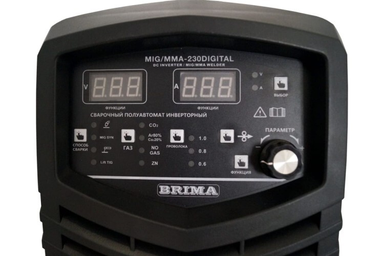 Полуавтомат BRIMA MIG/MMA-230 220В DIGITAL БП-00000595 обладает стабильными сварочными характеристиками при колебании напряжения в сети до ±10%