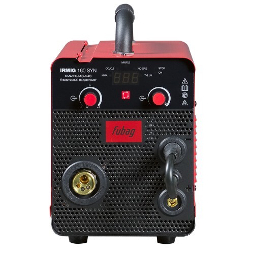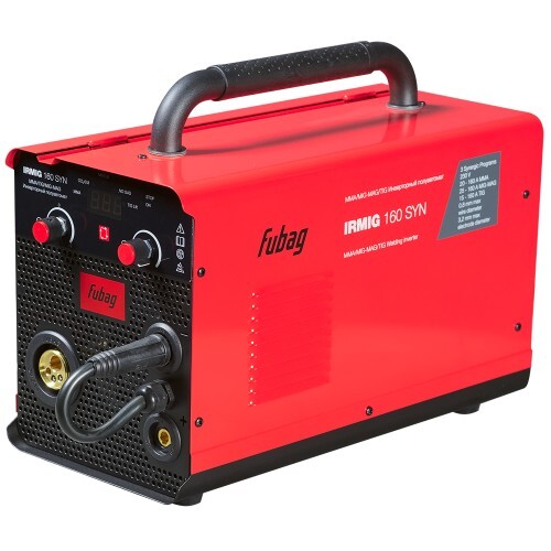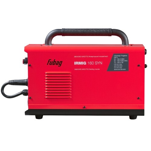 Сварочный полуавтомат Fubag IRMIG 160 SYN – высокопроизводительный сварочный аппарат, который может работать в режимах ММА, MIG/MAG и TIG сварки и имеет синергетическое управление в режиме полуавтоматической сварки для проволоки диаметром 0,8 мм . Аппарат работает в самом распространенном диапазоне сварочного тока 15-160 А с проволокой диаметром от 0,8 мм, катушкой весом 5 кг и диаметром 200 мм. Высокую производительность сварочной работы обеспечивает автоматическая подача проволоки. Регулировка подачи проволоки, сварочного напряжения и индуктивности в ручном режиме позволяет настроить оптимальный режим сварки. Передняя панель оснащена регуляторами силы тока и скорости подачи проволоки, что позволяет быстро и просто выбирать режимы и оптимальные параметры сварки. Сварочный полуавтомат Fubag IRMIG 160 SYN оснащен евроразъемом для быстрого и безопасного подключения сварочной горелки. Купив сварочный инвертор IRMIG 160 SYN, вы получите в коробке фирменную горелку 250 А и газовый шланг, а также кабель с электрододержателем и кабель заземления. Продолжительность включения (ПВ) составляет 25% при 40С. Эти данные приведены в соответствии с европейским стандартом EN60974-1 при внешней температуре 40С. Часто на рынке используется значение ПВ при температуре окружающей среды 20С: чем ниже температура, тем выше ПВ. Сварочный полуавтомат Fubag IRMIG 160 SYN обладает легкой сменой полярности для работы с самозащитной проволокой. Эффективная система охлаждения, а также встроенная функция термозащиты с индикацией перегрева гарантируют долговечность и надежность использования аппарата в условиях интенсивной эксплуатации. Быстрое подключение сварочных кабелей и евроразъем для подключения горелки гарантируют удобство использования. Все технические характеристики наглядно и подробно указаны на корпусе аппарата. Сварочный полуавтомат Fubag IRMIG 160 SYN поставляется с полным набором аксессуаров для MIG/MAG и ММА сварки .
