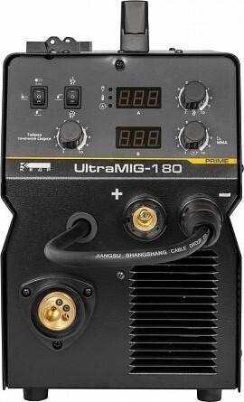 Полуавтомат КЕДР UltraMIG-180 (220В, 30-180А) - предназначен для сварки на малых и средних предприятиях, частных мастерских, а также для использования в домашних хозяйствах. Аппарат выполнен на современных IGBT-модулях, надежно защищенных силовой частью, а высокопрочный металлический корпус позволяет использовать его в тяжелых промышленных условиях. Цифровая панель с дисплеями значительно упрощает работу с данным аппаратом и позволяет снизить классификацию сварщика без потери качества сварки.