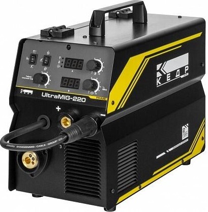Полуавтомат КЕДР UltraMIG-220 (220В, 30-220А) - предназначен для сварки на малых и средних предприятиях, частных мастерских, а также для использования в домашних хозяйствах. Аппарат выполнен на современных IGBT-модулях, надежно защищенных силовой частью, а высокопрочный металлический корпус позволяет использовать его в тяжелых промышленных условиях. Цифровая панель с дисплеями значительно упрощает работу с данным аппаратом и позволяет снизить классификацию сварщика без потери качества сварки.