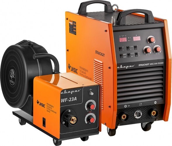Инверторный сварочный аппарат STANDART MIG 500 (N388) с выносным подающим механизмом предназначен для полуавтоматической сварки в среде защитных газов (MIG/MAG), сварки порошковой проволокой (FCAW), ручной дуговой сварки покрытым электродом (ММА).