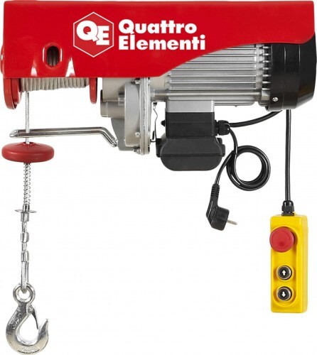 Таль элеткрическая Quattro Elementi предназначена для подъема и опускания грузов весом до 1000 кг на высоту до 6 м (500 кг - до 12 м). Данная модель может использоваться в рабочих зонах, гаражах, подсобных и производственных помещениях, на строительных и ремонтных площадках, складах, сервисных станциях. В комплект поставки входят специальные крепления для фиксации тали на балке и блок полиспаст.