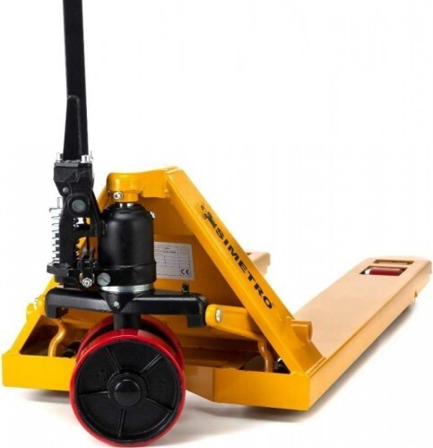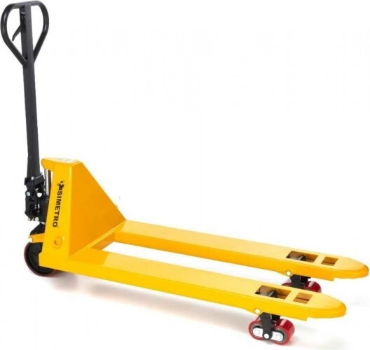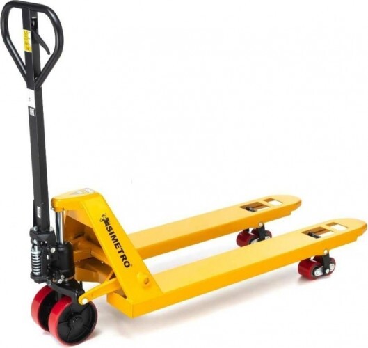 Тележка ручная гидравлическая Simetro STD-DF-25-1.15 (550х1150) предназначена для транспортировки грузов, упакованных на поддоны (паллеты). На тележке установлен надежный и проверенный временем гидроузел серии DF. Удобная рукоятка обеспечивает легкое управление тележкой. Данная модель нашла свое применение в складских и производственных помещениях, а также на открытых площадках. Грузоподъемность тележки 2500 кг. Порошковый окрас конструкции не подвержен образованию коррозии при любых климатических условиях. Цвет тележки желтый - Ral 1003. Высота ручки 1220 мм. Длина вил 1150 мм, высота подъема (верхнее положение вил) - 200 мм, высота вил в нижнем положении - 85 мм. Рулевые колеса - чугун / полиуретан, диаметр 180 мм. Ролики - чугун / полиуретан 80х70 мм (тандем). Габаритная длина тележки 1550 мм, габаритная ширина - 550 мм. Габаритная высота - 1220 мм. Вес 69 кг.