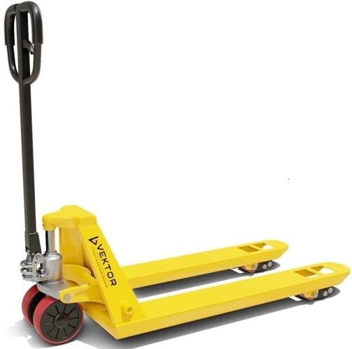Гидравлическая тележка (рохля) Vektor подходит для перемещения грузов на поддонах. Повсеместно используется на складах, на производствах, на фабриках, в магазинах.