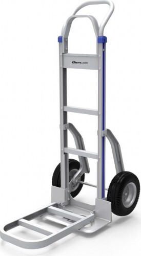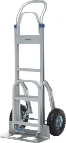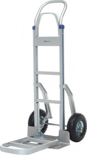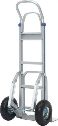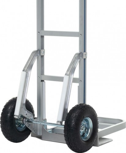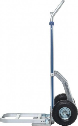 Тележка ручная Стелла-техник FW-88А алюминиевая, с откидной полкой. Грузоподъемность малой площадки 250кг., откидной полки 200кг. Тележка имеет: два пневматических колеса диаметром 255мм, шириной 80мм и откидную полку, позволяющую увеличить площадь перемещаемого груза. Благодаря пневматическим колесам тележку легко перемещать по неровным поверхностям и преодолевать препятствия. Пневматические колеса обеспечивают легкость и плавность хода. Расстояние между колесами (колея) 425мм. Размер малой площадки 232х457мм. Полезный размер откидной полки 52х30,5 см (от ручки). Полная глубина откидной полки с креплением 47см. Габариты тележки в собранном виде с малой площадкой 123х50,5х47см., с откидной полкой 123х50,5х80,5см. Высота ручки 123см. Вес 13кг. Тележка поставляется в разобранном виде, в коробке размером 1070х340х195мм, с паспортом и инструкцией по сборке.
