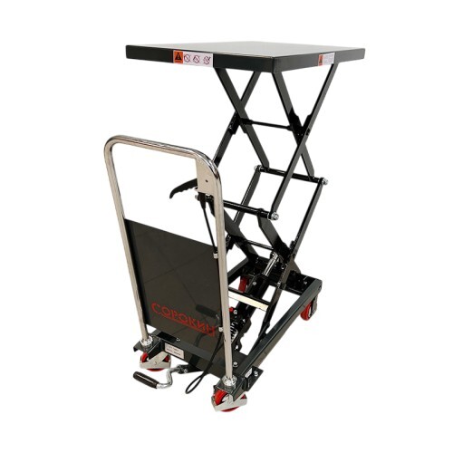 Тележка подъёмная гидравлическая предназначена для поднятия, опускания и транспортировки различных грузов. Сочетание гидравлического подъёмного устройства и большой металлической столешницы позволяет размещать на тележке крупногабаритные и тяжелые по массе предметы, такие как двигатели автомобилей, коробки передач, узлы и детали различных агрегатов и т.п. для дальнейшей транспортировки и подъёма или спуска на необходимую высоту. Тележка подъёмная гидравлическая может применяться при авторемонтных работах, на различных складах, в заводских и фабричных цехах, на строительных площадках.