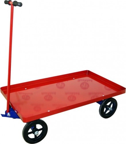 Тележка с поворотной осью и со съемной платформой, которая установлена на прочную стальную конструкцию.