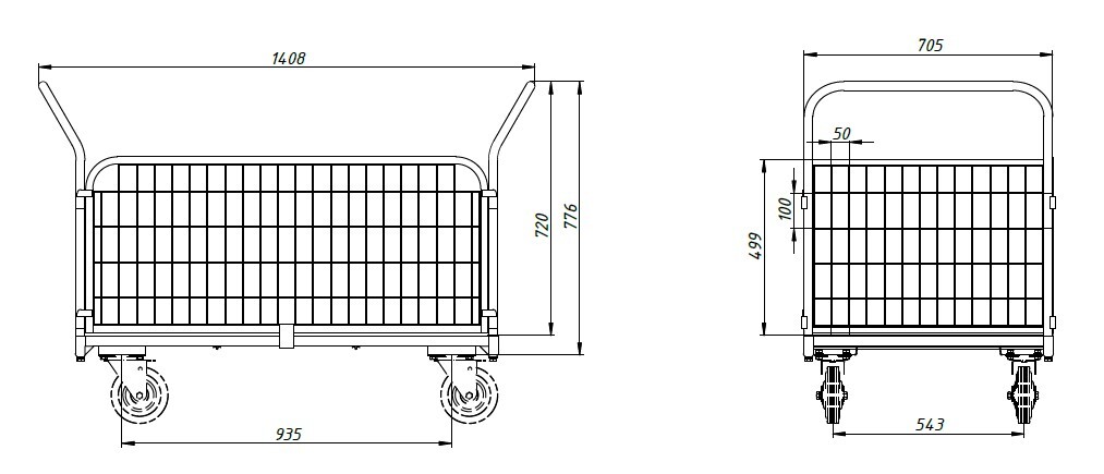 Тележка платформенная RUSKLAD ТС-5 700 х 1200 мм, съемные сетчатые борта (без колес)