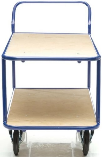 Платформы имеют металлический каркас накрытый фанерой толщиной 10 мм, расстояние между ярусами 480 мм. Покрытие металлических деталей тележки полимерное, цвет - синий.