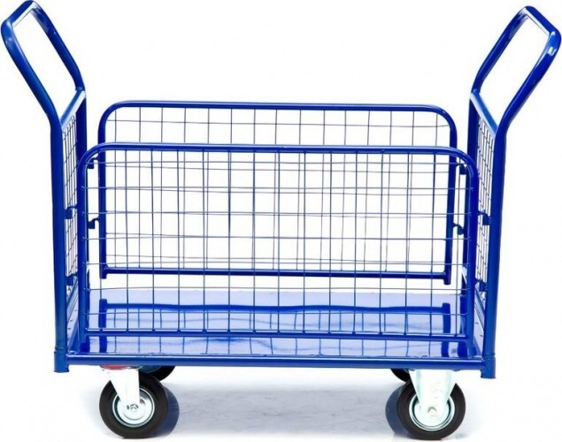 Тележка платформенная СТЕЛЛА-ТЕХНИК КПО-300 – эффективная тележка с сетчатыми съемными бортами. Работает как каркасный модуль для перевозки несыпучих грузов. Конструкция защищает товары от падения, увеличивает полезную площадь.