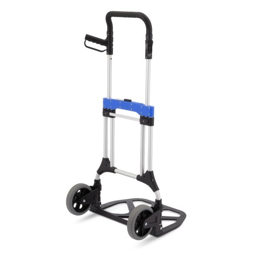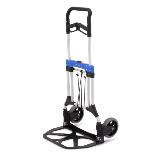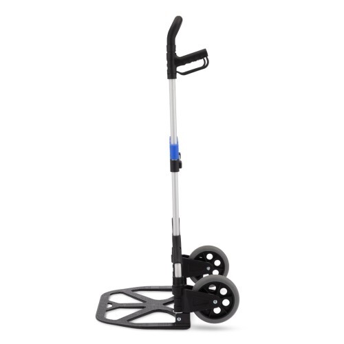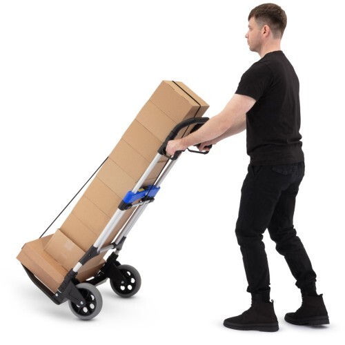 Тележка ручная Стелла-техник MCXL складная предназначена для перевозки груза весом до 200кг по ровной поверхности в магазине, офисе, на складе. Тележка оснащена удобной алюминевой складной ручкой, дополнительными рукоятками и металлической откидной платформой. Оборудуется двумя не поворотными колесами из литой резины с шариковыми подшипниками диаметром 200мм и шириной 42мм. Расстояние между колесами (колея) 530мм.. Размер площадки 590х400 мм. Высота ручки фиксируется в двух положениях, минимальная высота 1 020 мм и максимальная 1 280 мм. Наличие складной ручки и колес, откидывающейся платформы обеспечивает компактное хранение тележки.