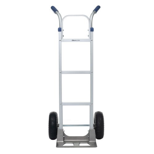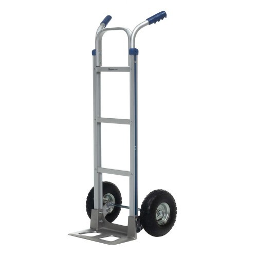 Тележка ручная Стелла-техник FW-84 алюминиевая. Грузоподъемность 200кг. Тележка имеет: два пневматических колеса на шариковом подшипнике, диаметром 255мм., шириной 80мм. Размер между колесами (колея) 425мм. Благодаря пневматическим колесам тележку легко перемещать по неровным поверхностям и преодолевать препятствия. Пневматические колеса обеспечивают легкость и плавность хода. Размер грузовой площадки 232х457мм. Габариты тележки в собранном виде 123х50,5х47см. Высота ручки 123см. Вес 10,5кг. Тележка поставляется в разобранном виде, в коробке размером 103х32х26см, с паспортом и инструкцией по сборке.