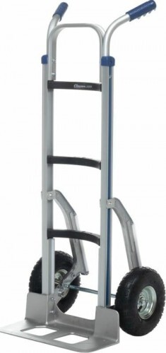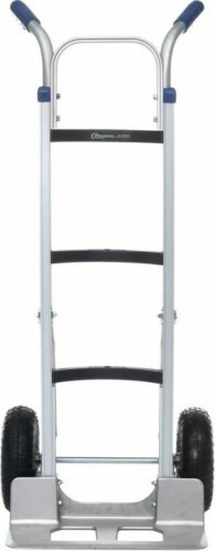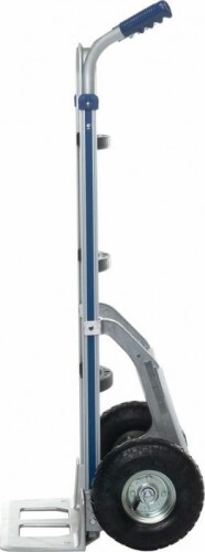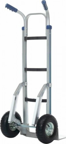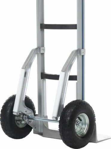 Тележка ручная Стелла-техник FW-84F алюминиевая, усиленная. Грузоподъемность 200кг. Тележка имеет: два пневматических колеса диаметром 255мм., шириной 80мм., усилительные дуги (лыжи), облегчающие перемещение по лестницам и пандусу, дугообразные горизонтальные перемычки для бутылей с водой и газовых баллонов. Благодаря пневматическим колесам тележку легко перемещать по неровным поверхностям и преодолевать препятствия. Пневматические колеса обеспечивают легкость и плавность хода. Расстояние между колесами (колея) 425мм. Размер грузовой площадки 232х457мм. Габариты тележки в собранном виде 123х50,5х47см. Высота ручки 123см. Вес 10,5кг. Тележка поставляется в разобранном виде, в коробке размером 1030х320х260мм, с паспортом и инструкцией по сборке.