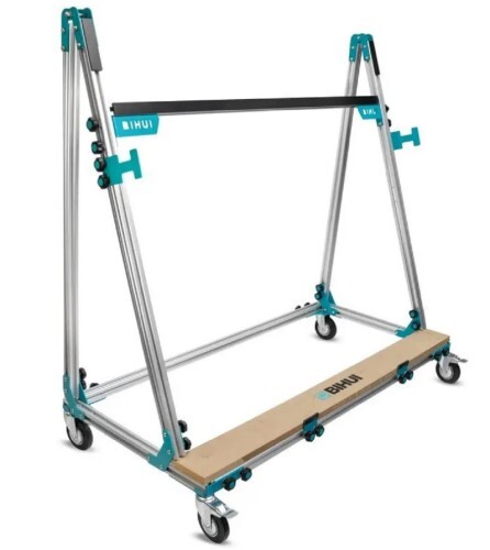 Специально разработанная конструкция, усиленные алюминиевые профили обеспечивают высокую стабильность и прочность конструкции при минимальном весе. Лёгкая и быстрая сборка, и разборка тележки обеспечивается благодаря системе фиксации EASY FIX. Тележка для перемещения керамогранита BIHUI SLAB оснащена раздвижным кронштейном для удобства маневрирования, погрузки и разгрузки керамической плиты на рабочий стол. Со сложенным кронштейном тележка BIHUI легко проходит через стандартный дверной проём, даже с погруженным материалом максимального формата.