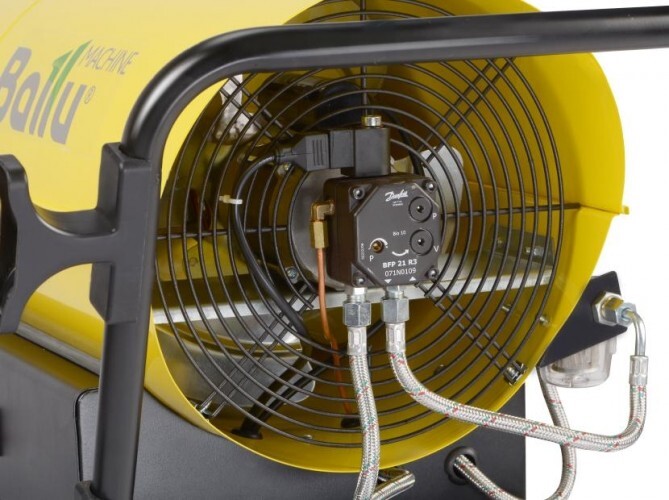 Преимущества Мощная система розжига с трансформатором 12 kV Трехходовой теплообменник из жаропрочной нержавеющей стали AISI 310S (КПД 90%) Высокопроизводительный насос подачи топлива Возможность эксплуатации в агрессивных средах Электронная система стабилизации пламени с фотоэлементом Цифровой дисплей для заданной и комнатной температуры Теплоизолированный кожух электродвигателя Камера сгорания из нержавеющей стали Износостойкое наружное покрытие корпуса Увеличенная мощность вентилятора Многоступенчатая система защиты Двухэлектродная система зажигания Прорезиненные колёса, исключающие проколы Удобные поручни для перемещения Удобная система намотки кабеля