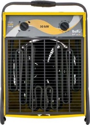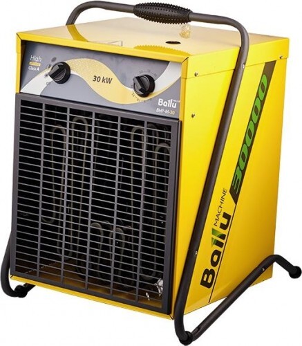 Тепловая электрическая пушка Ballu BHP-M-30 предназначена для общего обогрева строящихся, ремонтируемых объектов и помещений площадью до 300 м² При мощности потребления 30 кВт повышение температуры воздуха составляет до 36 °C. Имеет 3 режима работы: полная мощность нагрева, 1/2 мощность нагрева, а также режим вентиляции. Розетка и сетевой кабель в комплект поставки не входят.