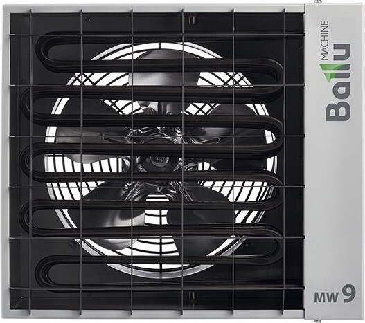 Специализированный профессиональный тепловентилятор BALLU BHP-MW-9 с максимальной мощностью потребления 9 кВт эффективно обеспечит общий обогрев помещения площадью до 100 м²