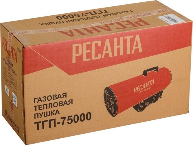Газовая тепловая пушка Ресанта ТГП-75000 высокой мощностью 75 кВт осуществляет прямой нагрев воздуха в нежилых помещениях. В качестве топлива используются сжиженные газы: пропан, пропан-бутан, бутан. Их экономичный расход 5,1 кг/ч обеспечивает длительную бесперебойную работу теплопушки. Газовая теплопушка Ресанта ТГП-75000 имеет простую и надежную конструкцию без дымохода и применяется в хорошо проветриваемых зданиях, на строительных площадках, в производственных цехах. Прочный металлический корпус, устойчивый к механическим повреждениям, защищает внутренние элементы и гарантирует длительный срок службы.