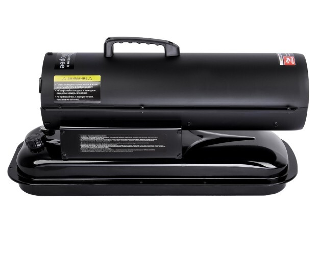 Дизельная тепловая пушка прямого нагрева (или воздухонагреватель) мощностью 22 кВт и площадью обогрева 175 кв.м и топливным баком на 20 литров, предназначена для работы на открытых/полузакрытых площадках и временного обогрева/просушки хорошо проветриваемых помещений или с работающей приточно-вытяжной вентиляцией.