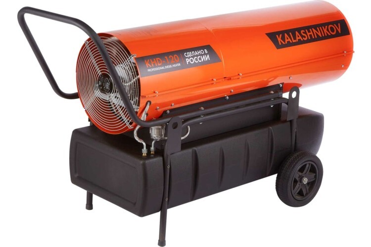 Дизельная тепловая пушка KALASHNIKOV KHD-120 – это мощный обогреватель, работающий на дизельном топливе. Предназначена для обогрева нежилых помещений и локального прогрева рабочих поверхностей. Встроенный в генератор тепла KALASHNIKOV KHD-120 термостат повышенной чувствительности с удобной и понятной регулировкой позволяет использовать устройство в автономном режиме, автоматически поддерживая заданную для работы температуру.