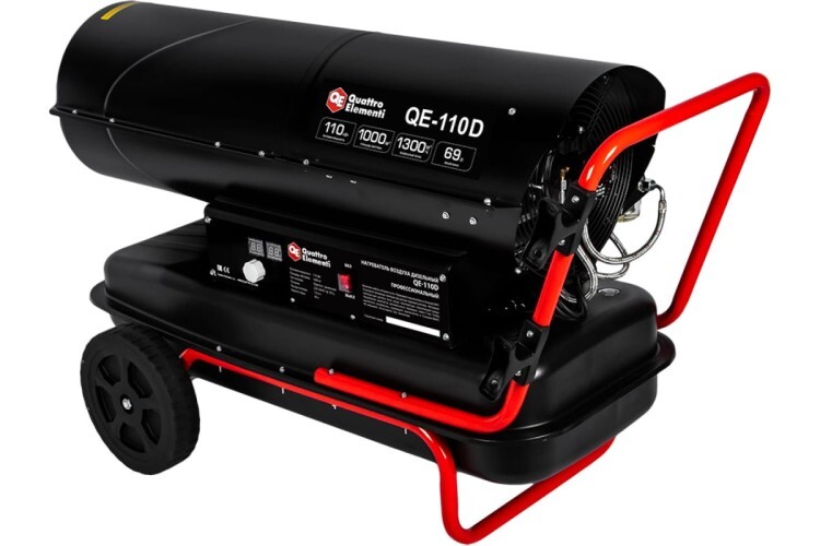 Дизельная тепловая пушка прямого нагрева QE- 110D предназначена для обогрева хорошо вентилируемых нежилых помещений складского и промышленного назначения, ангаров, гаражей и ремонтных зон площадью до 1000 м2. Принцип действия основан на прохождении воздушного потока через нагревательный элемент, использующий энергию сгорания дизельного топлива.
