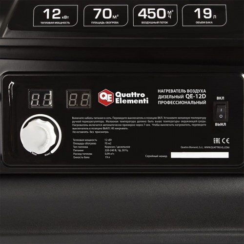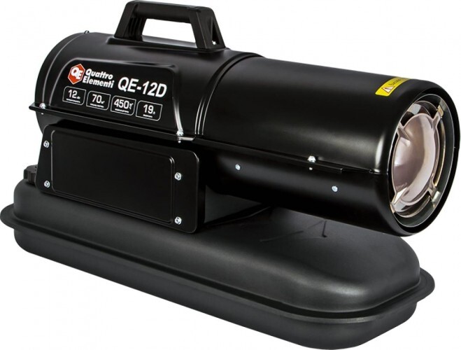 Тепловая пушка на дизтопливе прямого нагрева QUATTRO ELEMENTI QE-12D подходит для обогрева помещений складского, торгового и промышленного назначения.