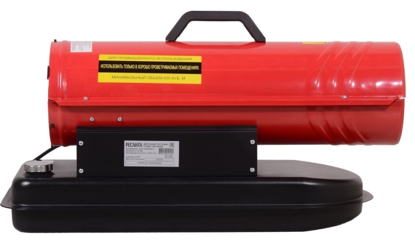 Расход топлива составляет 2,34 кг/ч, а объем топливного бака – 19 литров, что обеспечивает до 8 часов непрерывной работы. Дизельная теплопушка данной модели весит всего 15,52 кг, что упрощает ее транспортировку и установку.