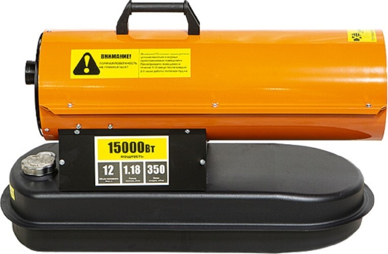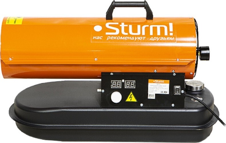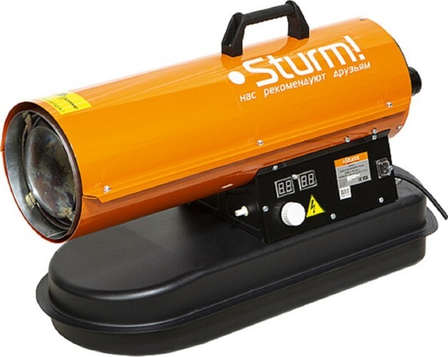 Дизельная тепловая пушка Sturm. DKH15 предназначен для обогрева производственных помещений, складов и ангаров, строительных площадок и павильонов. Также ее используют на строительных площадках для просушивания стен, разморозки траншей, подогрева бетона. Во время арктических экспедиций дизельные тепловые пушки также часто выступают генератором тепла. Тепловая пушка отличается высокой производительностью 350 м3/ч при экономичном расходе топлива 1,18 л/ч. Полного бака 12 л хватает до 10 часов работы без дозаправки.
