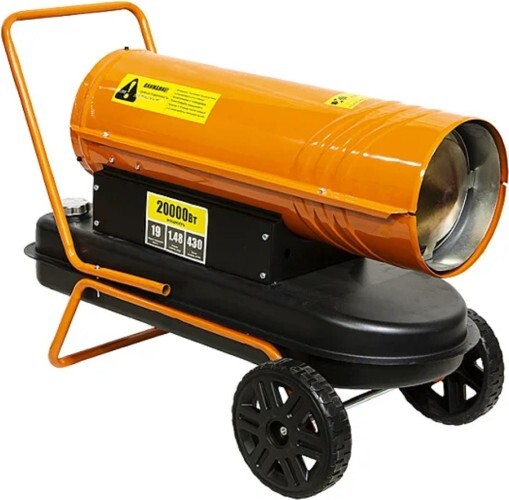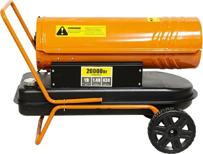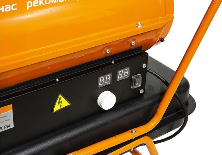 Уровень КПД прибора близок к 100%, а тепловая мощность достигает 20 кВт. Тепловая пушка оснащена встроенным термостатом повышенной чувствительности для работы в автономном режиме с поддержанием заданной температуры и цифровым дисплеем - указателем температуры.