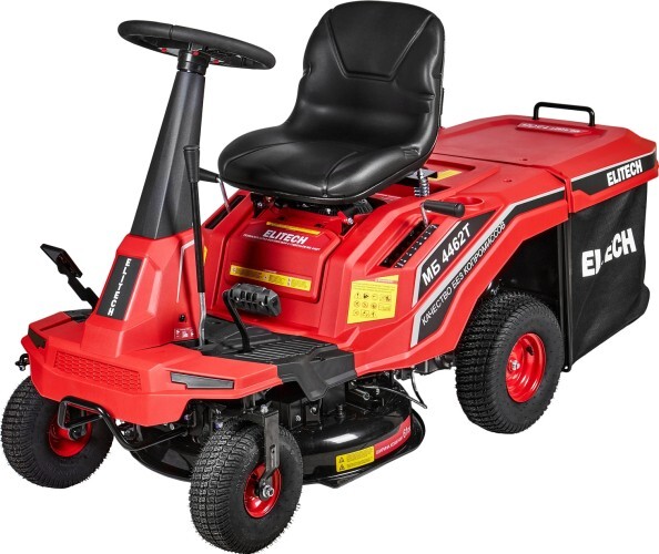 Трактор садовый ELITECH МБ 4462Т(E1610.006.00) с сиденьем, с двигателем мощностью 6,0 л.с. (4,4 кВт), шириной обработки 610 мм и бесступенчатой трансмиссией CVT предназначена для кошения травы на предварительно подготовленной поверхности (газон, лужайка, поле для игр и т.п.) с уклоном не более 15°.