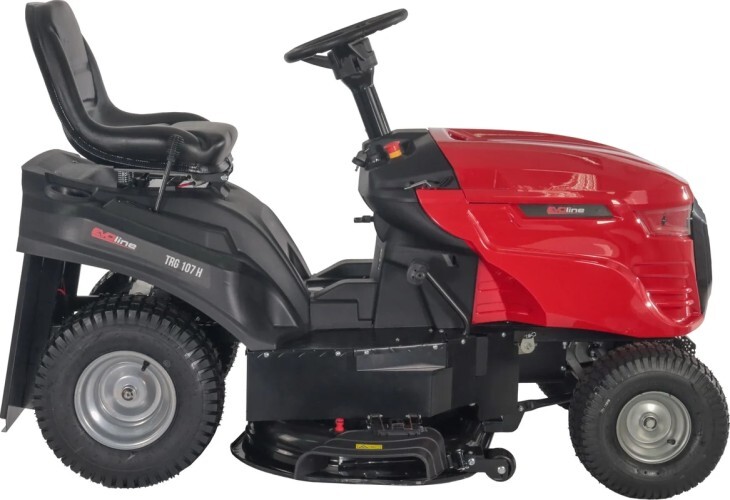 Косилка с сиденьем EVOline TRG 107 H — это мощная модель, предназначенная для быстрого кошения травы на обширных площадях. Её ширина кошения составляет 107 см, а высота стрижки регулируется в диапазоне от 35 до 75 мм с возможностью выбора одного из пяти положений.