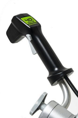 Эта модель имеет наплечный ремень, а также эргономичный дизайн рукоятки с упором в предплечье. Долгое автономное время работы (до 80 минут от 4 А/час батареи) и отсутствие необходимости использовать бензин и масло, переносить за собой провод боясь его порезать - вот ключевые преимущества этого триммера. Данная модель оснащена предохранителем от случайного включения и защитным кожухом режущей части. Для долговечной работы двигатель имеет защиту от перегрузки, вал между двигателем и режущей частью - прямой и выполнен из стали. Триммер работает от аккумуляторной батареи G-MAX 40V, которую можно использовать с другими устройствами (15+ устройств) линейки 40V.