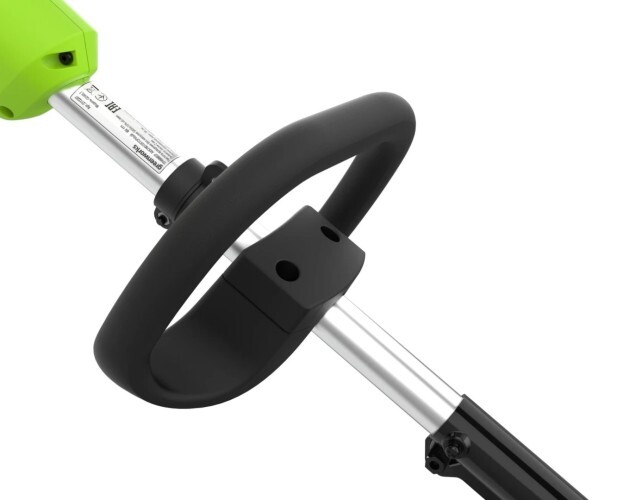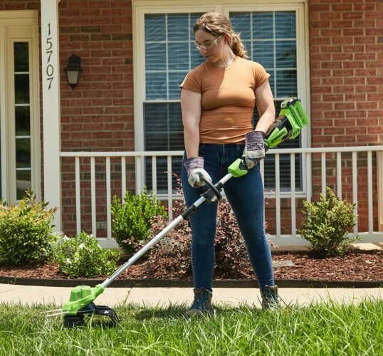 Триммер аккумуляторный Greenworks GD40LT, 40V, 38 см, с 1хАКБ 8 Ач и ЗУ (2112207UH) — Легкий и достаточно мощный инструмент для покоса травы. Отличная замена электрическому триммеру. Система TORQDRIVE обеспечивает повышенный крутящий момент, что позволяет легкому инструменту эффективно работать с увеличенной шириной скашивания до 38 см. Для оптимальной настройки просто переставьте нож для подрезки лески на защитном ограждении (в базовой комплектации триммер настроен на 33 см). Прочная леска 2 мм легко справляется с густой травой, а удобная полуавтоматическая подача по принципу удара и двухсторонний выход лески делают работу максимально комфортной. Регулировка оборотов нажатием на курок позволяет менять интенсивность работы — от мощного скашивания до аккуратной работы вокруг препятствий. Защитная скоба предотвращает повреждение предметов, а эргономичная D-образная рукоятка с регулировкой по высоте и наплечный ремень обеспечивают удобство. Складная штанга делает хранение и транспортировку простыми. Триммер запускается одним нажатием кнопки – никаких рывков шнура или сложного старта. Благодаря электродвигателю он работает тихо, без раздражающего шума, и при этом не производит вредных выбросов, делая уход за газоном экологичным и комфортным. Идеальный выбор для тех, кто ценит удобство, чистоту и заботу об окружающей среде.