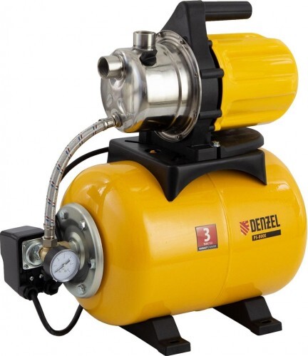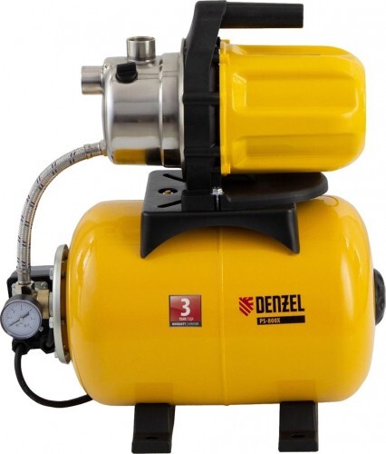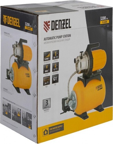 Бытовая насосная станция Denzel PS800X предназначена для снабжения чистой водой жилых домов, коттеджей, фермерских хозяйств. Подача воды организуется из скважин, колодцев, водоемов и т.д. Электродвигатель мощностью 800 Вт позволяет прокачивать за 1 час до 3200 литров чистой воды и обеспечивает высоту напора до 38 м.