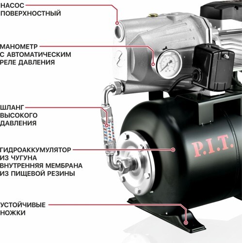Насосная станция POG1100-P2 предназначена водоснабжения домов и загородных участков. Станция автоматически поддерживает давление, что обеспечивает бесперебойную работу. Термозащита двигателя предохраняет аппарат от перегрузок. Корпус выполнен из чугуна, который защищает станцию от повреждений. Наличие манометра позволяет своевременно контролировать уровень давления воды на выходе.