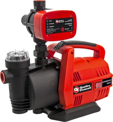 Автоматическая насосная станция Quattro Elementi Automatico 700EL предназначена для перекачивания чистой воды, не содержащей песка, грязи, абразивных частиц, волокнистых включений и любых иных загрязнений. Обеспечивает автоматическое бесперебойное снабжение водой. Идеально подходит для водоснабжения дач, домов и частных домохозяйств из колодцев, скважин и других источников чистой воды с глубины не более 8 метров. Автоматическая станция водоснабжения Automatico 700 EL состоит из электрического двигателя, насосной части, гидравлической арматуры, блока автоматики, фильтра грубой очистки.Отсуствие гидроаккумулятора делает эту станцию проще,компактнее и дешевле.