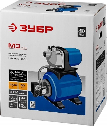 Установка для водоснабжения ЗУБР НАС-М3-1000 предназначена для забора воды с глубины, полива, автоматического поддержания давления при устройстве систем водоснабжения, а термопредохранитель для защиты двигателя и экономичность,благодаря гидроаккумулятору, делают ее незаменимой на дачном участке. Ударопрочный корпус насоса изготовлен из гигиенического армированного стекловолокном пластика. Объем гидроаккумулятора 20 л обеспечивает полноценный водоразбор с более редкими включениями насоса, что продлевает срок его службы и способствует экономии электроэнергии. Соединительный штуцер наиболее распространенного диаметра 1" для легкого подключения. Термопредохранитель для защиты от перегрева предотвращает повреждение двигателя. Автоматическое включение/выключение насоса при изменении давления в магистрали.