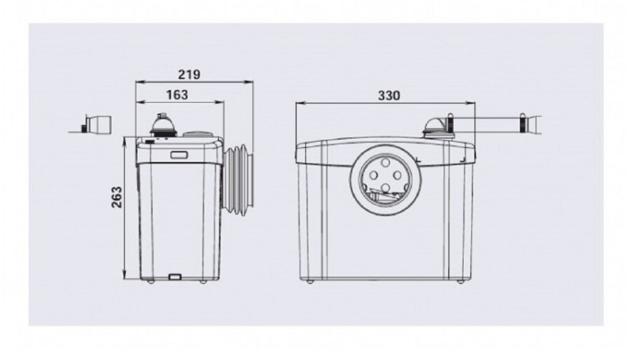 Установка канализационная SFA SANIBROYEUR представляет собой практичную легкую в использовании систему для организации принудительной канализации. Конструкция выполнена из высококачественных материалов с звукопоглощающими свойствами. Опоры двигатели выполнены из вибропоглащающих материалов, что делает работу оборудования практически бесшумной. SFA SANIBROYEUR монтируется за унитазной ножкой, за счет чего требует минимум места и не выделяется из интерьера. После спуска стоки попадают в резервуар в корпусе мотора. Срабатывает датчик достижения критического установленного уровня и запускается система активации насосного оборудования. Далее включается турбинный двигатель канализационной установки SANIBROYEUR от SFA. Турбинный двигатель приводит в действие измельчительную систему, которая за 3-4 секунды измельчает стоки и содержащиеся в них включения.