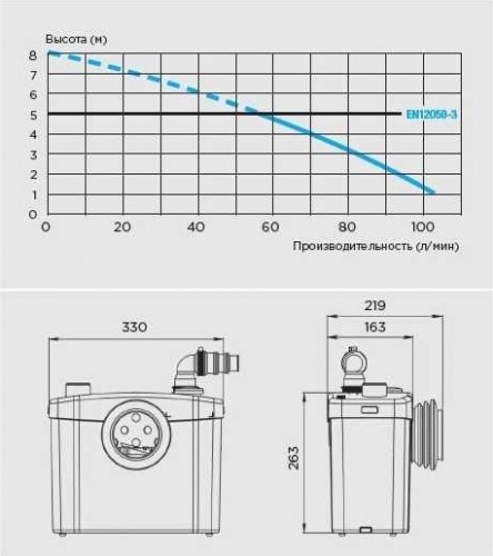 Практичный и мощный канализационный насос SFA SANITOP подходит для одновременного подключения унитаза, оснащенного горизонтальным выходом, и умывальника. Это возможность «2 в 1». Этот современный прибор работает по принципу принудительной канализации, откачивая сточные воды и отходы как по горизонтали (до 100 м), так и по вертикали (до 5 м). Надежный насос для туалета SANITOP — оптимальное решение для оборудования туалетов как в городских квартирах, так в загородных домах. Все детали этого фекального насоса-измельчителя для туалета изготовлены из материалов повышенной прочности, по европейским стандартам. Вся продукция компании SFA имеет международные сертификаты качества. Мощность, встроенного в насос, двигателя составляет 400 Ватт, что позволяет ему эффективно откачивать любое количество сточных вод. Нож измельчителя сделан из нержавеющей стали. SANITOP позволяет легко и быстро разместить санузел даже на небольшой площади. Главное условие — наличие воды и электричества, стационарная канализация может быть далеко (высоко) или отсутствовать совсем (вместо нее установлен септик или есть сточная яма).