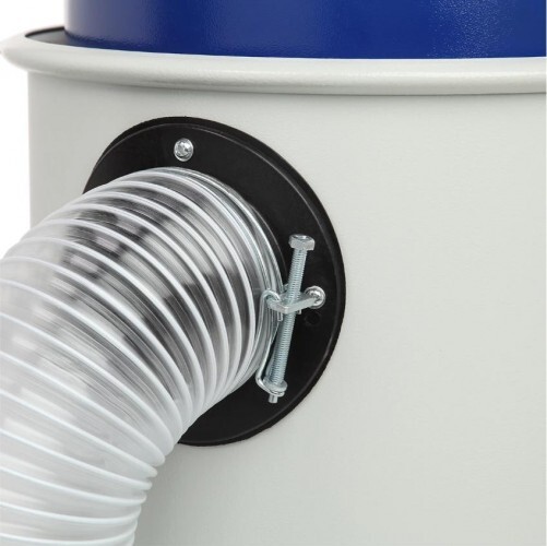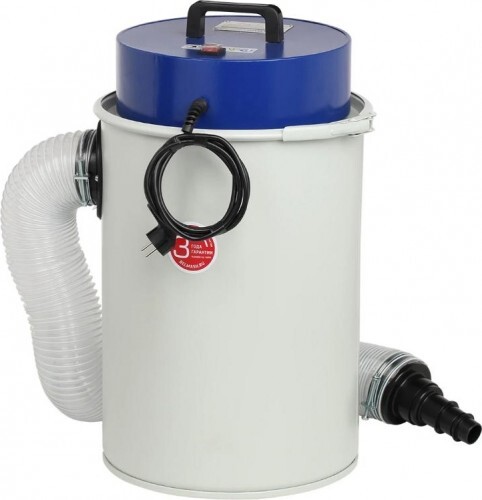 Стружкоотсос имеет компактные размеры, поэтому идеально подходит для работы в ограниченном пространстве. Вес всего 11 кг, легко перемещать по мастерской, для этого есть ручка в верхней части корпуса.