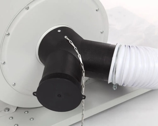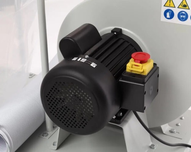 Вытяжка рассчитана на подключение двух станков за счет наличия специального адаптера. Установка мобильна за счет колес на основании. При необходимости можно доукомплектовать вытяжку фильтр-картриджем, что повысит степень очистки. Имеет асинхронный двигатель мощностью 1,5 кВт позволяет вращать крыльчатку диаметром 300 мм со скоростью 2800 об./мин. Объем всасывания составляет 2530 м3/час.