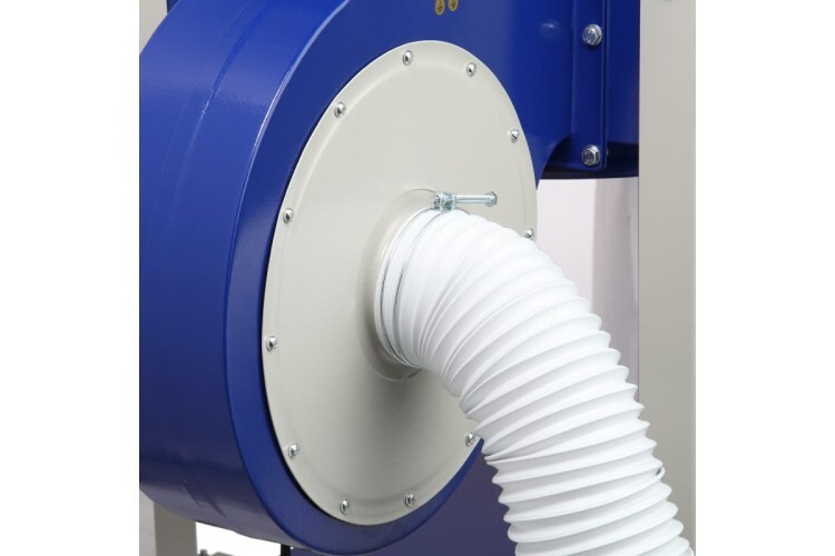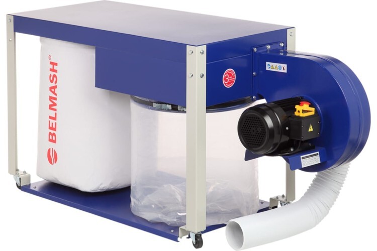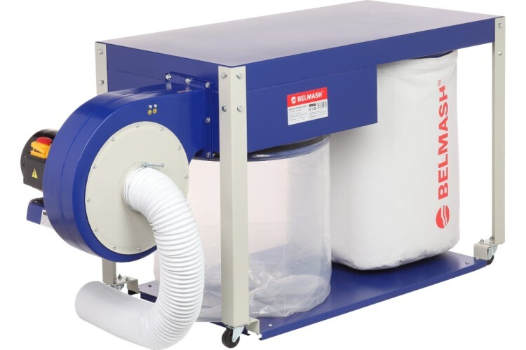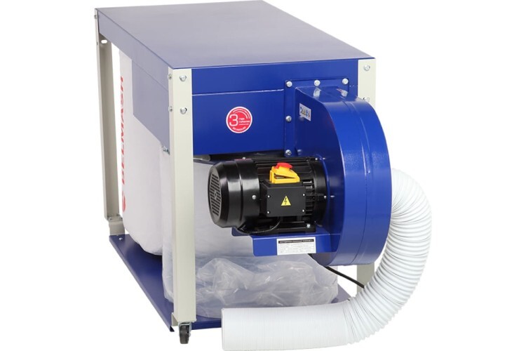Центробежный вентилятор создает разрежение воздуха, благодаря которому образуется поток, втягивающий все отходы реза (стружку, пыль) в разделительный корпус. Более крупные и тяжелые частицы падают в стружкосборник, а мелкие частицы под воздействием потока воздуха, попадают в фильтр-мешок. Уровень фильтрации 5 мкм, достаточная для работы с фуговальными, распиловочными, ленточнопильными, фуговально-рейсмусовыми станками.