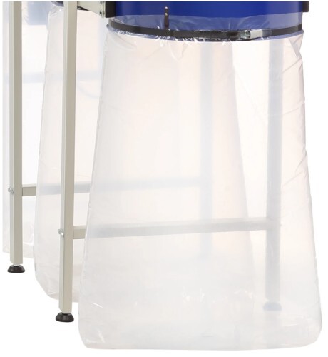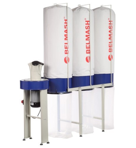 Монтаж/демонтаж фильтр-мешков и мешков-стружкосборников не требует ни специального инструмента, ни большого количества времени, благодаря специальным зажимам. Фильтр-мешки очищаются без снятия, путем стряхивания пыли внутрь. Уровень очистки составляет 5 мкм, этого достаточно для работы не только с распиловочными и строгальными станками, но и с оборудованием, дающие мелкую взвесь – шлифовальными, фрезерными, рейсмусовыми станками. Три вместительных стружкосборника, объемом по 160 литров каждый, способствуют длительной работе без их частой смены.