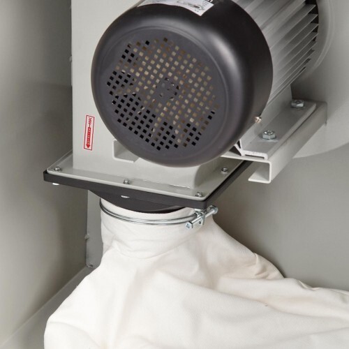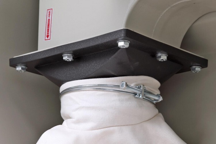 Центробежный вентилятор создает разрежение воздуха, благодаря которому образуется поток, втягивающий все отходы реза (стружку, пыль) в разделительный узел. Более крупные и тяжелые частицы падают в ящик для отходов, а мелкие частицы, такие как пыль, под воздействием потока воздуха, попадают в фильтр-мешок. Далее дополнительно очищается через фильтр-картриджи, установленные в дверце. Установка имеет соединительный шланг из нержавеющей стали (100×1800 мм) и фильтр-мешок из огнеупорной ткани. Крыльчатка выполнена из стали.