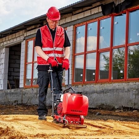 Прямоходная виброплита KEDASA MS60-4 предназначена для уплотнения почвы, асфальта, бетона и сыпучих материалов (щебень, гравий, дробленые скальные породы) на глубину до 200 мм. Скорость движения составляет 24 м/мин.