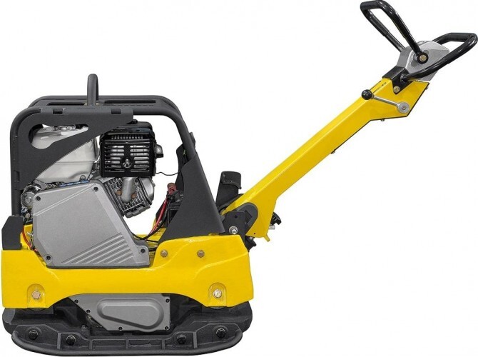 Для удобства оператора кнопка включения/выключения реверсивного привода находится на ручке виброплиты;